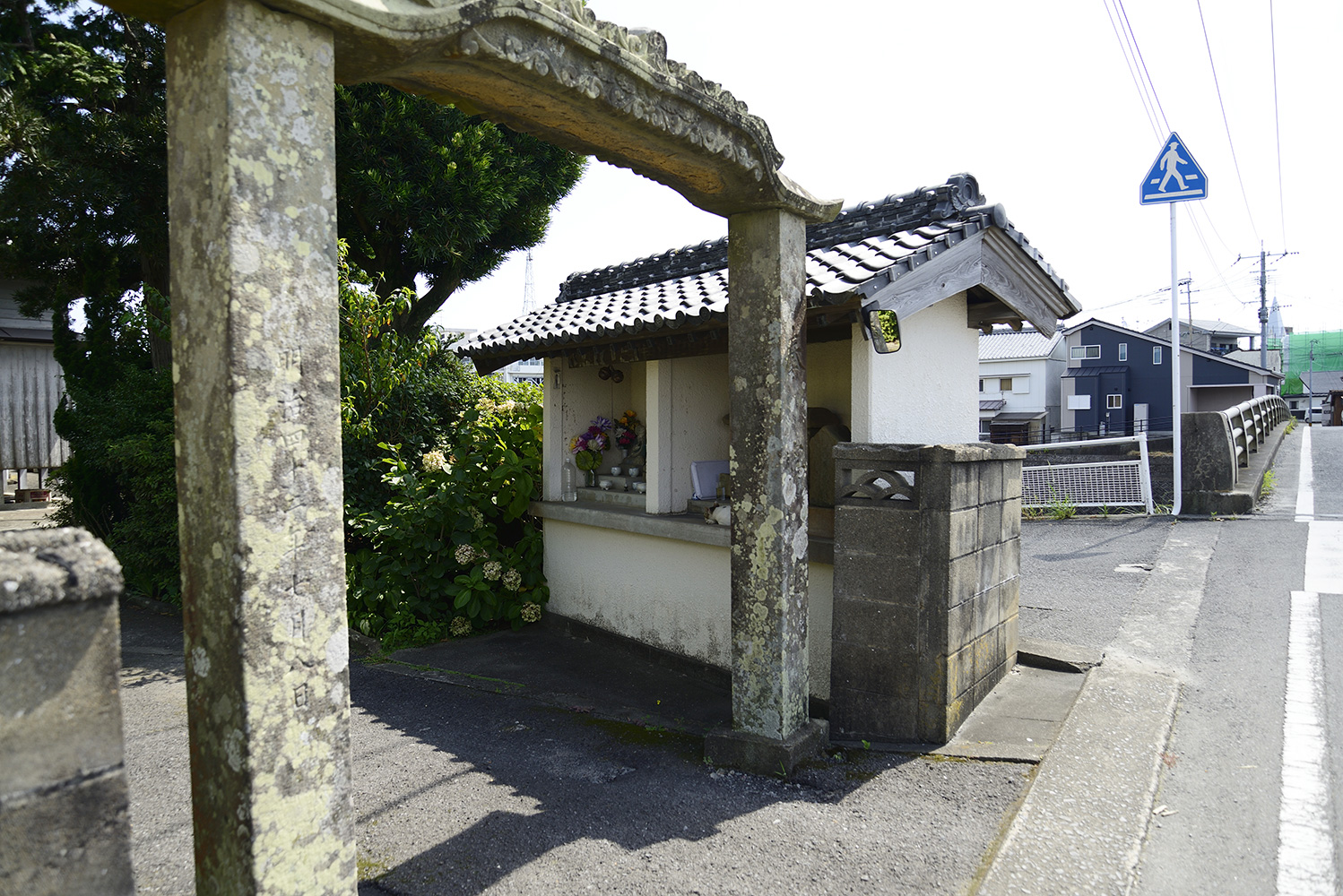 第27番札所からは、市役所前を通り、突き当りを右に曲がる。福江川にかかる中野橋を渡ったところにある