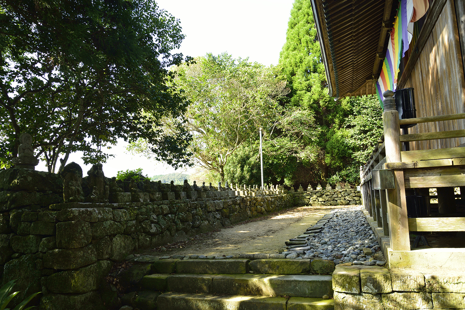 明星院本堂を廻るように進むと裏山に階段の登り口がある。