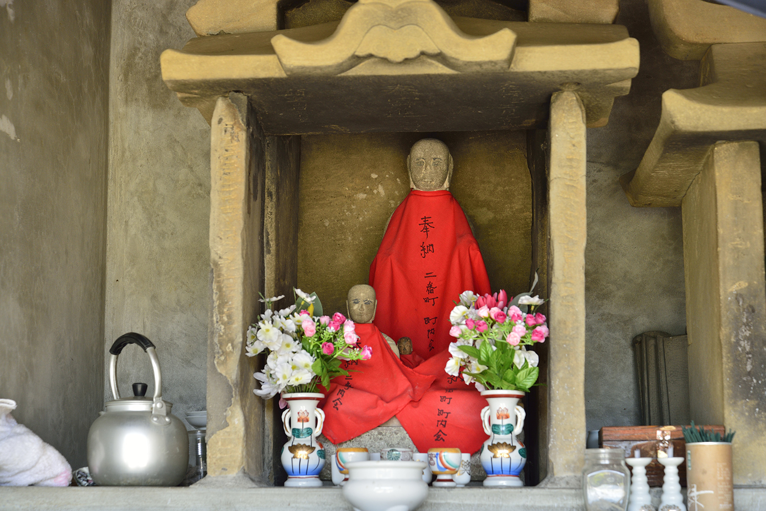 以前は二番町で地蔵堂の掃除割り当てもしていたようですが、現在は女性の方4~5名ほどで世話しているようです。お茶をあげたり、花を供えたり、線香をたてたりしています。