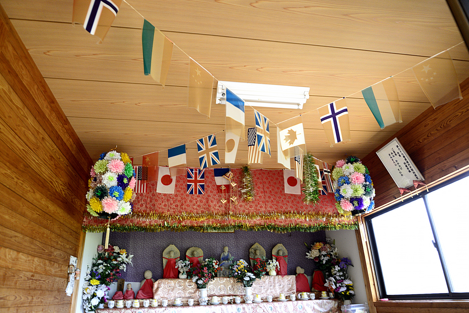 そして、福江方面からもたくさんの方がお参りに来てくれて、お接待は朝8時ごろから夕方6時ごろまでしていたそうです。今は女性専用の部屋にお大師さんを飾って、旧の3月21日に内輪だけのお接待をしています。友達10名から20名ほどが来てくれるそうです。地蔵堂には毎月旧の24日に行って花やお水を替えています、がお参りするだけでお経をあげるようなことはしません